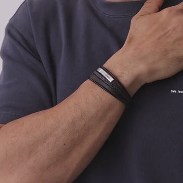 This Men’s Black Leather Bracelet is a stylish and meaningful accessory that makes the perfect gift for your loved one. Crafted from high-quality braided and smooth leather strands, it features a sleek stainless steel clasp and engraving plate that can be personalized with your own message, initials, or date.